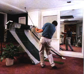 Improve Your Game Improve your game with The Golf Mate! The best way to improve your game is by hitting hundreds of balls a day, just like the professionals. This repetitive stroke practice enhances your timing, your technique, and your power. The enhanced muscle memory will lower your score by improving the consistency of your swing. The way you swing and hit the ball into your Golf Mate is exactly the way you would on the course or driving range. The more you hit into your Golf Mate, the more you will improve your game. The Golf Mate has been proven by PGA professionals as the only portable indoor device that closely duplicates driving range practice. Imagine -- your own driving range in the privacy of your home or office. |